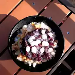 Gathering and laughing, pointing at the ice and giving thumbs up