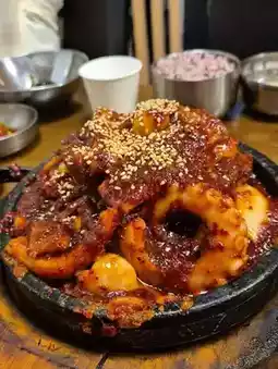 We ordered octopus and lamb at Shilla Restaurant, and the portions were large and the ingredients were fresh!