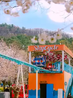 Suwon Land with Sky Bikes running between cherry blossoms🌸