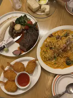 The atmosphere is great and everything from steak to pasta is really delicious,