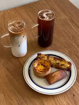 ☕ The rich aroma of coffee is a perfect combination with egg tarts! The egg tart has rich textures, a crispy crust and sweet and delicate filling. It is super satisfying after one bite!