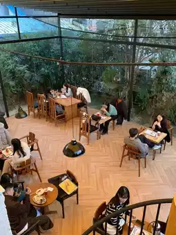 The interior of the store has a minimalist design based on wood grain, and the large windows that let in natural light create a comfortable atmosphere. It is easy to enter alone, and you can often see young locals spending time with their laptops open.