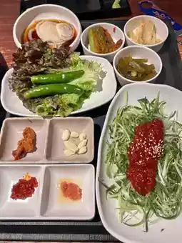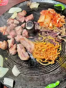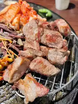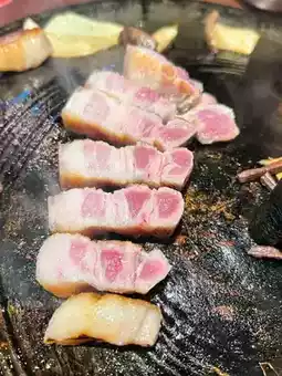 There is a dedicated barbecue service. The meat is thick and juicy. Although the pork belly is fatty, it is delicious when paired with vegetables and is not greasy. It will definitely fill you up if you pair it with rice! You need to order rice separately.