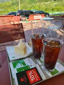 I'm sure most Daegu residents know that the coffee here is delicious. It's famous for its drip coffee, and the interior is beautiful, and the logo itself is refreshing, making it even prettier this season. The outdoor terrace was definitely nice, but the reservoir view from the second floor was truly amazing!