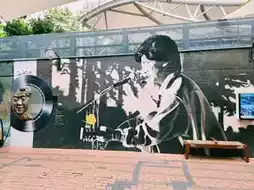 The streets are paved with stone slabs printed with lyrics and handprints, and every step seems to be stepping on the melody of golden stones. Along the way, there are statues, memorial walls, and even speakers playing his music, so fans or not, his influence can be felt.