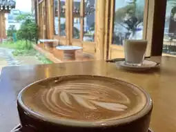 โ Highlight: Savor a smooth, rich latte topped with delicate latte art, while enjoying views of the tranquil garden and rustic wooden interiors.