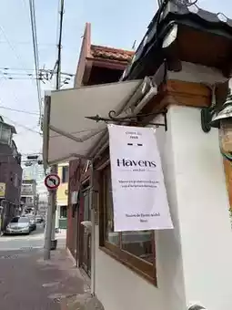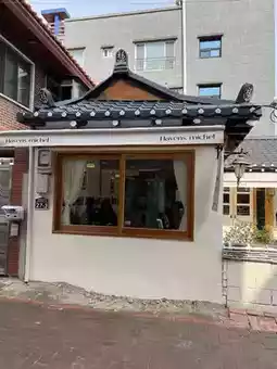 Havens Michel (헤이븐스미쉘) is a stylish Daegu cafe with a traditional Korean hanok roof and a European-style exterior.