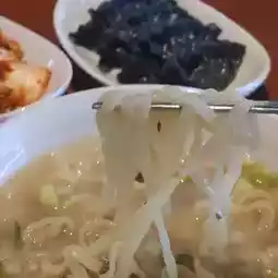 The shaved noodles were very chewy and really delicious. The soup was light, but the kimchi was very spicy. I suggest adding it to the soup to make it taste just right.