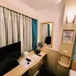 Although primarily catering to business travelers, the rooms are far from cramped. The double rooms feature a comfortable large bed, a desk, a mini fridge, and a TV, along with a bathtub and a bidet toilet. The bed is soft, and the pillows provide excellent support, ensuring a restful sleep and a refreshed start to the day.