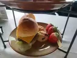 Since it's a restaurant, bread before the meal is also provided for afternoon tea. There are also scones. Savory is a regular-sized hamburger cut into pieces.