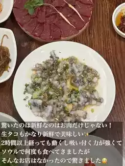 I love raw octopus and have eaten it many times at famous restaurants in Seoul, but this was the first time I'd ever seen raw octopus that moved and clung to my appetite. 😳