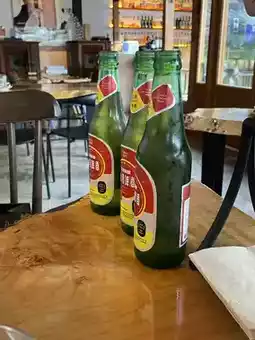 The cozy chandelier and the music playing in the background are truly captivating. They also serve mango beer, and the draft beer served in Usuhari glasses is also impressive.
