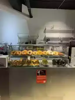 Spanning the first, second, and third floors, you can enjoy bagels and coffee in a spacious space.