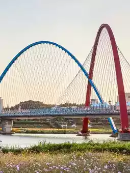 "Expo Bridge during the day in spring is a vibrant urban viewpoint. The clear spring skies enhance the bridge's architectural design, and the lush green riverbanks add a natural counterpoint to the city's lines. It's a prime spot to appreciate Daejeon's blend of nature and modern architecture."
