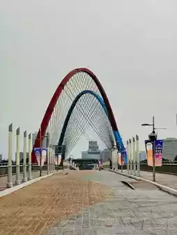 As dusk settles, make your way to the nearby Expo Music Fountain Park (3-1 Doryong-dong). Grab a spot along the riverbank for their signature evening fountain show—multicolored lights flicker on sprays that rise and fall in time with the music, with the bridge forming a dreamy backdrop for photos. If it’s cloudy and rainy (like on my visit!), don’t worry—it adds a dramatic flair to the park’s modern landscape and reflections on the water!
