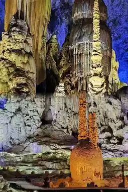The World Geopark is famous for its large-scale karst caves. The stalactites and stalagmites in the caves are fantastic in shape, and the "Silver Rain Tree" and "Inverted Pipa" are shocking. The cave is divided into three layers: upper, middle and lower.
