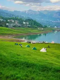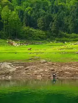 Watching green mountains reflected in the jade-like water