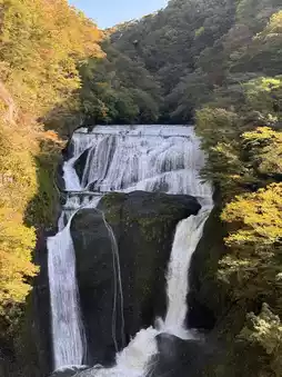 From the first observation deck, you can enjoy the impressive waterfall, and from the second observation deck, you can enjoy the spectacular combination of the waterfall and the red and yellow autumn leaves.