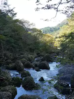 Because the waterfall falls in four tiers down a large rock face, it is also known as "Yodo Falls" (Four-Time Falls).