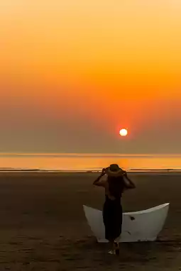 Moving naturally, naturally letting the sea breeze blow up the skirt, walking and swaying towards the dim sunrise, letting the light shine on the body, the sense of atmosphere is gone, like the feeling of old lady and the sea
