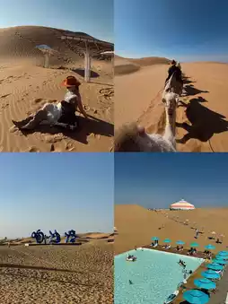 1️⃣ **Xiangshawan**: With the hotel wristband, you're a VIP—no queues for activities like camel rides, roller coasters, bumper cars, sand sliding, desert trains, ladybug cars, and ATVs, all unlimited. Even after checkout at noon the next day, you can keep playing until closing time.