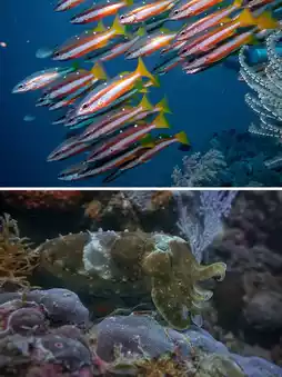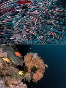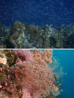 Further ahead of the grassland is a large sandy slope, where underwater creatures such as eels, sea moths, spotted rays, and flatfish, which live in the sand, are hidden. On the left and right sides are coral cliffs with different styles, where you can see various anemone crabs, sea fans and sponges as large as 3–4 meters, and layers of coral reefs covered with colorful soft corals. It's simply breathtaking! If you go diving in Cebu, Philippines, don't miss Dalaguete!