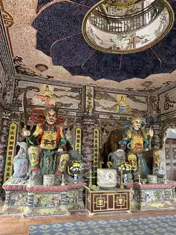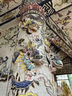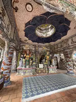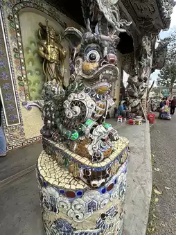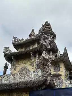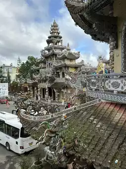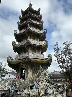 Unique architectural site located in Vietnam, near the city of Dalat. This pagoda was built in 1964 and quickly gained popularity due to its unique style. The temple was nicknamed the "Temple of Broken Pottery" due to the use of various ceramic fragments in its design. Craftsmen create amazing mosaic compositions from broken pottery. This is not only a place for tourists, but also a functioning Buddhist temple, where locals come for prayers and meditation. The atmosphere here is calm and peaceful, which allows you to observe the beauty of the surrounding nature and the spiritual atmosphere.