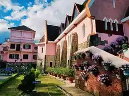 Famous landmark church building attractions in Dalat, Vietnam: Maria Monastery, a famous pink church building, suitable for taking photos 📸 check in