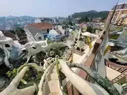 【Crazy House】(also known as Hang Nga Villa) is so bizarre that it has become a world-famous attraction. It has a fairytale vibe but is also quite peculiar. The overall design of the building resembles a giant tree, incorporating elements like animals, mushrooms, spider webs, and cave sculptures.