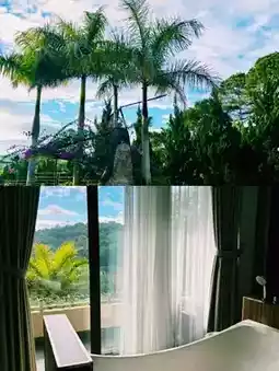 The trees swaying in the wind, the sound of gentle waves, and the light of the sunset were peaceful in itself.