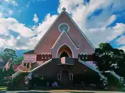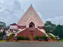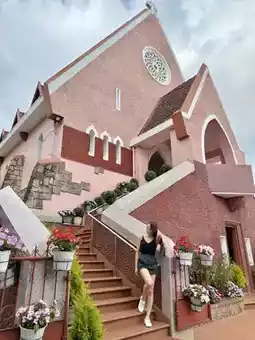 Famous landmark church building attractions in Dalat, Vietnam: Maria Monastery, a famous pink church building, suitable for taking photos 📸 check in