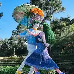 🕌 This garden is filled with stunning flowers and artwork. One of its most striking features is the two giant stone faces that appear to be staring at each other across a small stream, perfect for Instagram and Reel posts. Other notable sculptures include a giant violin, musical notes carved into the rock, and a playful monkey raising its hand in the peace sign. 👍🏻👍🏻 One zone features a bronze statue of a romantic dancing couple, while another features a rustic wooden cafe that feels like a fairytale forest. The garden meanders through pine trees, showcasing everything from dragons and unicorns to life-size model airplanes and artistic paintings depicting Vietnamese history and culture. 🥰👍🏻 There are plenty of beautiful photo spots, perfect for anyone looking to capture memorable moments. The tunnel itself is beautiful and atmospheric, and the surrounding area is equally stunning. Whether you're a photography enthusiast, an art lover, or just looking for a fun place to visit in Dalat, this place will not disappoint. 👍🏻👍🏻 We recommend allowing 60-90 minutes to fully explore and take photos. It's a surprisingly unique, creative, and profound experience. Even on a rainy day, it's definitely worth a visit.