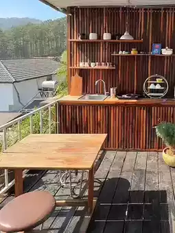 The homestay features an outdoor relaxation area, with decorative lighting at night and a bonfire for socializing and sharing experiences with fellow travelers. Alternatively, guests can cycle or hike to enjoy the surrounding nature.