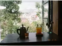 ✨ Upstairs there is a window with a beautiful view. Sitting there looking out at the slope, the light shining through the wooden window frame, sipping tea while chatting or reading a book is very pleasant 📷.