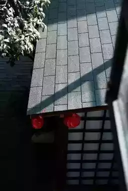 then slide down the eaves and onto the bluestone slabs of the courtyard.