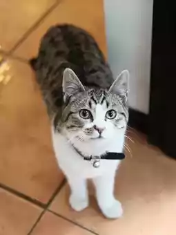 Having breakfast in the courtyard in the sun, the kitten stretched and asked for a hug.