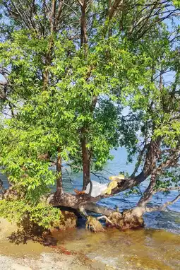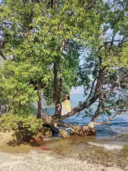 📸 17:00, Sea Area No. 1 (Sea of Flowers) - Walk to the beach, there is a lonely tree 🌳 - Take photos of the dead tree by the beach - Walk to the covered bridge (you can take pictures through the bridge hole and the sea is sparkling)
