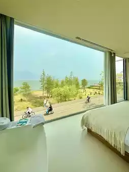 The super shocking 270° panoramic floor-to-ceiling glass windows seem to fit Erhai Lake into a glass picture frame