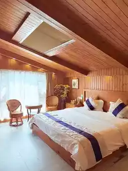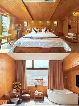 → Room: Bai ethnic group tie-dye soft furnishings + log-style courtyard, every corner can be used to take Instagram-style nine-square photos! The rooftop viewing terrace, when you open the curtains in the morning, you can see the sunrise over Cangshan Mountain🌄