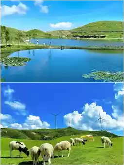 • Morning: After arriving in Chenzhou, take a taxi directly to Yangtianhu Prairie (about 1.5 hours). It's like stepping into a Hayao Miyazaki anime world with blue skies, vast grasslands dotted with sheep and cattle🐏 There are also various Instagram-worthy spots like Hobbit houses and windmills that make for great photos.