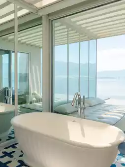 luxurious bathtubs and Kohler's top-of-the-line showers, plus the hollow landscape on top of the shower space, instantly enhance the atmosphere of washing and care.