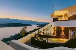 Whitewashed cave-style design + blue-domed castle architecture—every snapshot is postcard-worthy! Tiered buildings cascade down the hillside, and as dusk falls, warm golden lights create a Greek island escape.