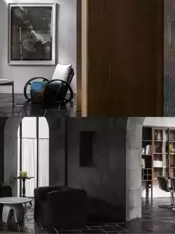 Through a wooden door hidden behind a winding path, Shuanglang's unique rough-textured bluestone archway and fireplace come into view from the lobby, with 'Fensi' memories carved into the natural 'exhibits'.