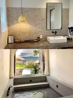 The inn has three huge garden public areas filled with lemon trees and flowers. The white daisies seem to extend into the sea, and there is a white swing by the seaside, so dreamy~