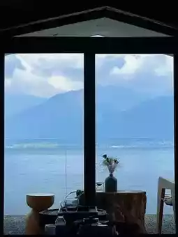 3️⃣ The public areas are photogenic🎞️, with the ground floor right by Erhai Lake, featuring waterside trees🌳, a small garden, and bougainvillea, full of artistic charm✨