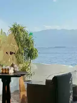 Tranquil Terrace King Sea-View Room—the terrace is spacious, nearly 20 square meters, and features a water platform perfect for photos📷. Located on the top floor, it offers a commanding view of the sea, vast and majestic🌊.