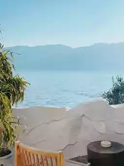 The first floor features a common area and café, while the basement level offers a seaside café spot and photo opportunities, exuding a "Santorini" vacation vibe by Erhai Lake. The rooms are designed in a creamy aesthetic with earthy tones, using natural wood materials, furniture, and greenery to create a cozy atmosphere 🍃