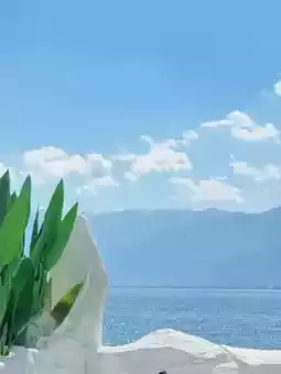 The shimmering waves of Erhai Lake and the cloud shadows over Cangshan Mountain create a silent moment in a pure white space