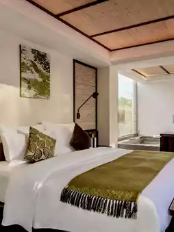 complete with a koi pond, outdoor pool, tea room, gym, and forest-themed photo spots. The comprehensive facilities offer a rich and diverse stay experience.