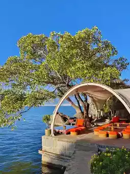 The Sun Palace is located on Yujidao Island in Shuanglang, Dali, built by the shores of Erhai Lake. Construction began in 2000 and took six years to complete. The designer perfectly combined Bai ethnic architectural features with Yang Liping’s personal aesthetic to create this unique building. It uses a large amount of natural stone, whose rustic textures beautifully complement the shimmering waves of Erhai Lake. The distinctive arched design resembles the sun rising over the sea. Inside, seven staggered levels create a multi-dimensional space; walking through it, every step reveals a new scene, like a living painting. A century-old banyan tree runs through the central courtyard, its lush branches and leaves filtering sunlight into dappled patterns, as if you can hear nature whispering.